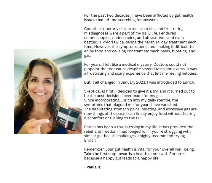 A healthy gut naturally regulates blood sugar and crushes cravings. Enrich helps your body find its natural weight without the diet drama.