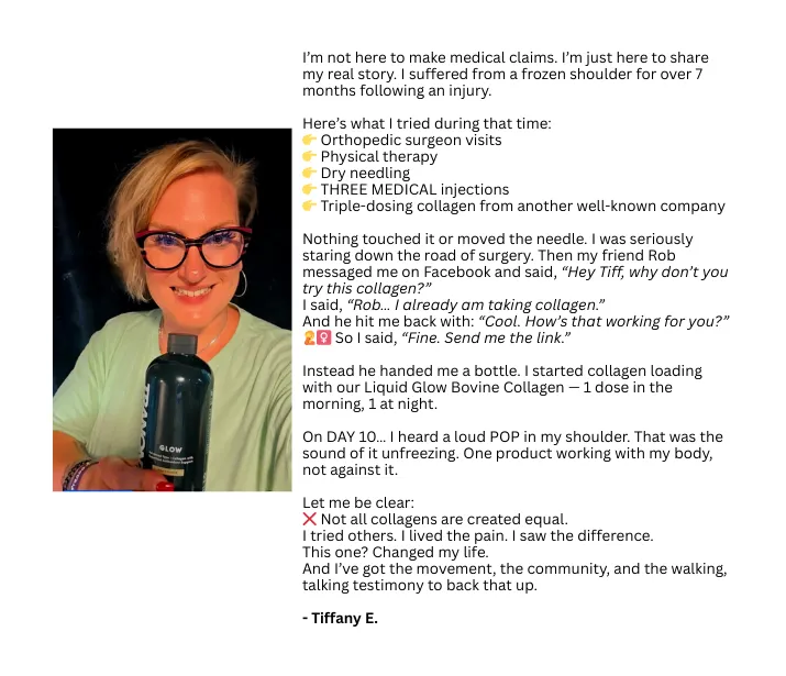 Your gut-skin connection is real, but beauty is just the beginning. Yes, GLOW's 11g collagen and 4,500mcg biotin transform skin, hair, and nails. But it also replenishes collagen for joint support and delivers powerful antioxidants to fight free radical damage. Think of it as structural support for your entire body - from your complexion to your connective tissue.